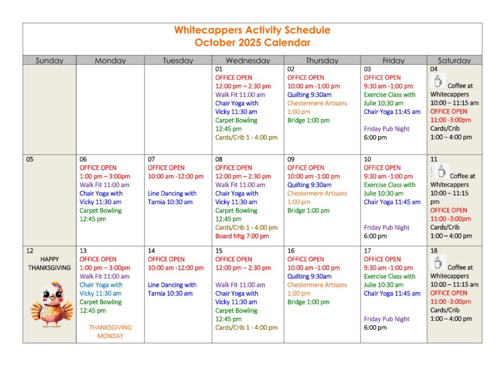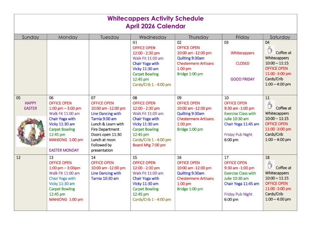 The Chestermere Whitecappers have been in the city for more than 30 years with a wonderful history. Whitecappers welcome all who are 50+ to try out activities, visit the centre and learn more about the association. Bring a friend!