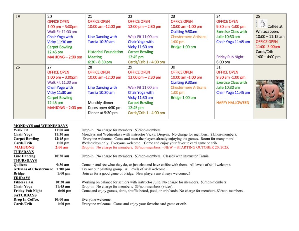 Enjoy Walk Fit, Chair Yoga, Carpet Bowling, Exercise With Julie, Line Dancing with CWA members